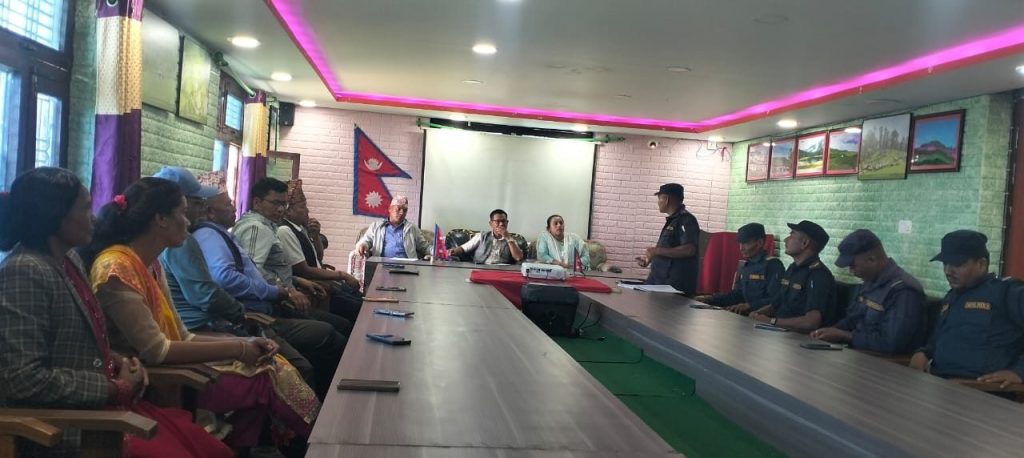 सुशासन समिति संयोजक कुसल राज बुढाको अध्यक्षता, गाउँपालिका अध्यक्ष ज्वाला सिं साउदको प्रमुख आतिथ्य तथा निमित्त प्रमुख प्रशासकीय अधिकृत संगिता ताम्राकारको सञ्चालनमा सम्पन्न उक्त बैठकमा वडा अध्यक्ष, गाउँपालिका पदाधिकारी, स्थानीय प्रहरी प्रशासन तथा अन्य सरोकारवालाको उपस्थिति थियो।